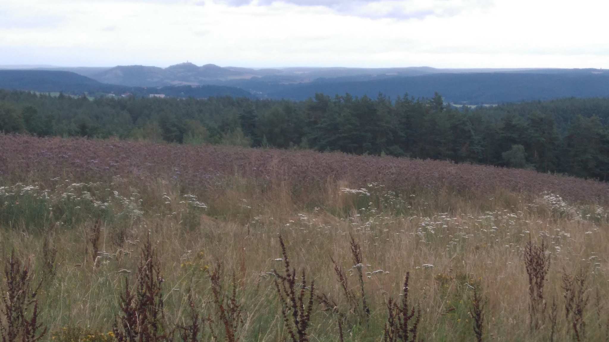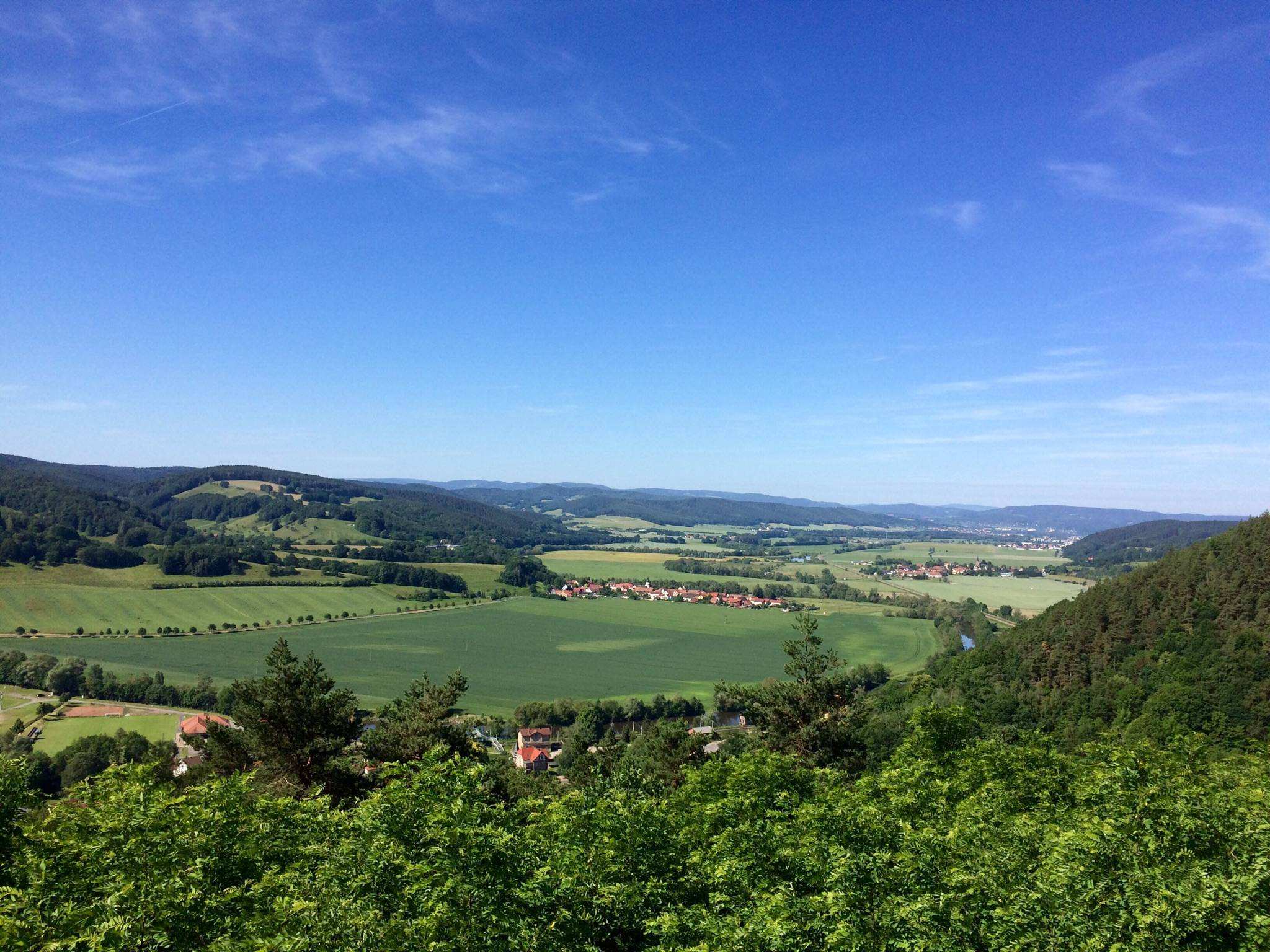 Sehr schöne Aussicht auf die Berge des Saaletals und die Leuchtenburg. Davor Orlamünde. Von Partschefeld oder Uhlstädt leicht erreichbar.